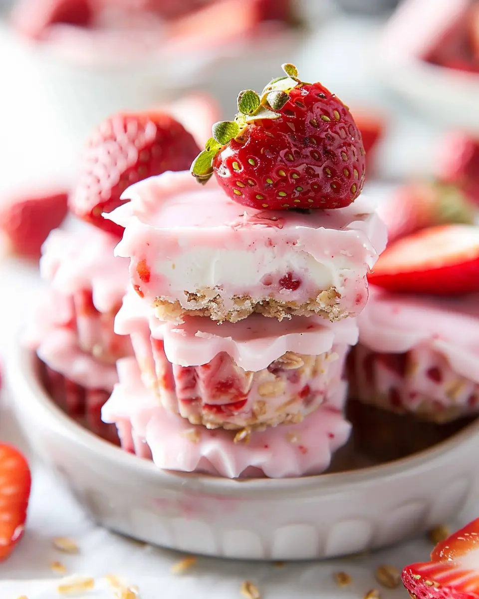 Now, take a moment to relish your handiwork. These bites are perfect for a quick snack, a wholesome dessert, or even a refreshing breakfast on the go. Grab a few and enjoy the vibrant flavors of strawberries and creamy yogurt while feeling good about what you’re eating.