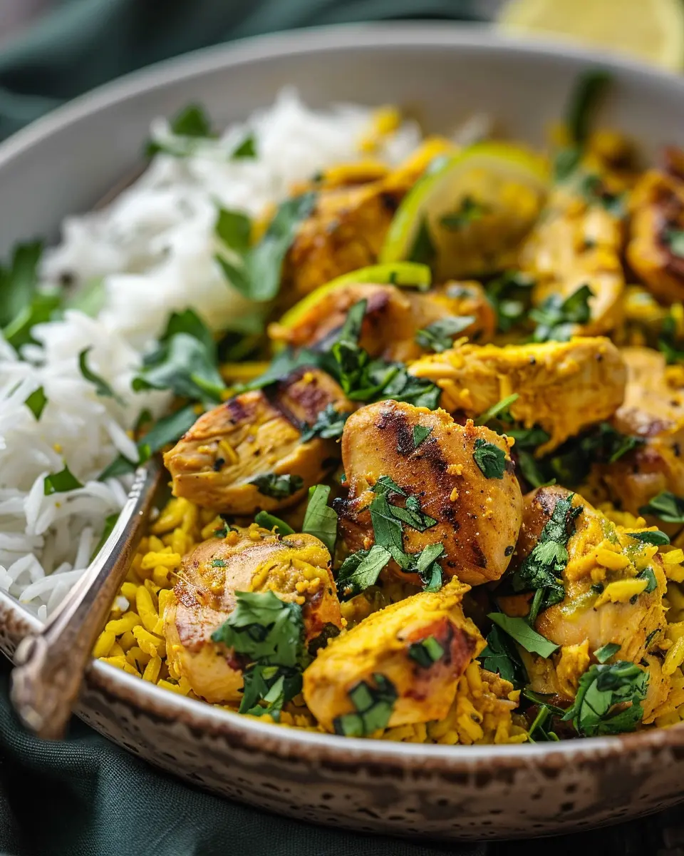 Don’t underestimate the power of a garnish! For your Anti-Inflammatory Turmeric Chicken & Rice, a sprinkle of fresh cilantro or parsley not only enhances the dish’s visual appeal but also adds a burst of flavor. A squeeze of fresh lemon juice can brighten up the entire plate, while a dollop of Greek yogurt or coconut yogurt can provide a creamy texture that balances the spices. For an extra gourmet feel, consider popping some toasted almonds or pine nuts on top for a delightful crunch.
