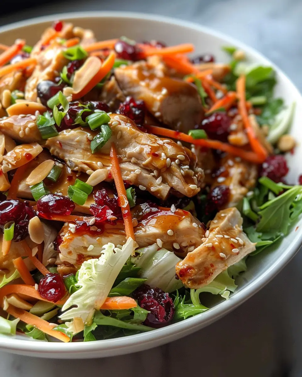 The Asian Chicken Cranberry Salad is not only a burst of flavors but also a powerhouse of nutrients. Packed with lean protein from chicken, antioxidants from cranberries, and crunchy veggies, it’s a delicious way to support your health. Plus, the vibrant colors make it a feast for the eyes!