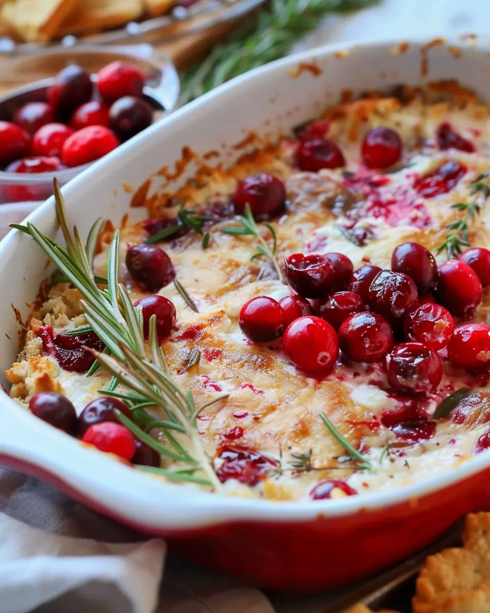 Absolutely! For a lighter version of this baked cranberry cream cheese dip, consider using low-fat cream cheese or Greek yogurt as a substitute. Both will provide a creamy texture without all the calories. You could also eliminate the Turkey Bacon topping or substitute it with sautéed mushrooms or spinach for a hearty, veggie-packed addition. Want to make it even healthier? Incorporate whole-grain crackers or vegetable sticks for dipping instead of traditional chips.