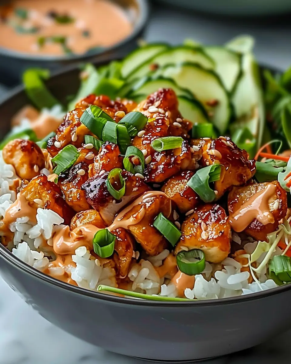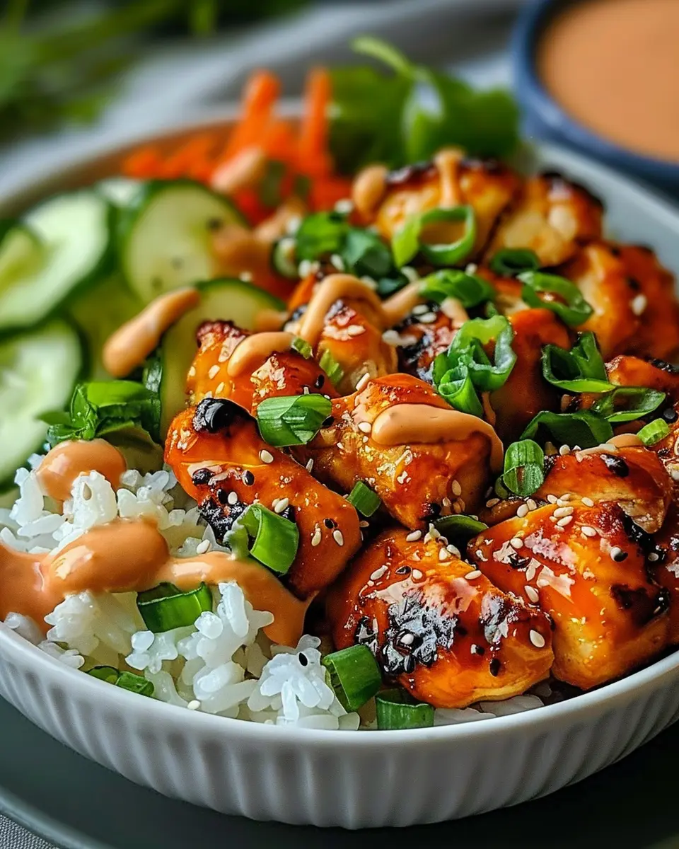 These adjustments can help cater to specific tastes or dietary needs while still maintaining that satisfying flavor profile of a classic Bang Bang Chicken Bowl. Happy cooking!