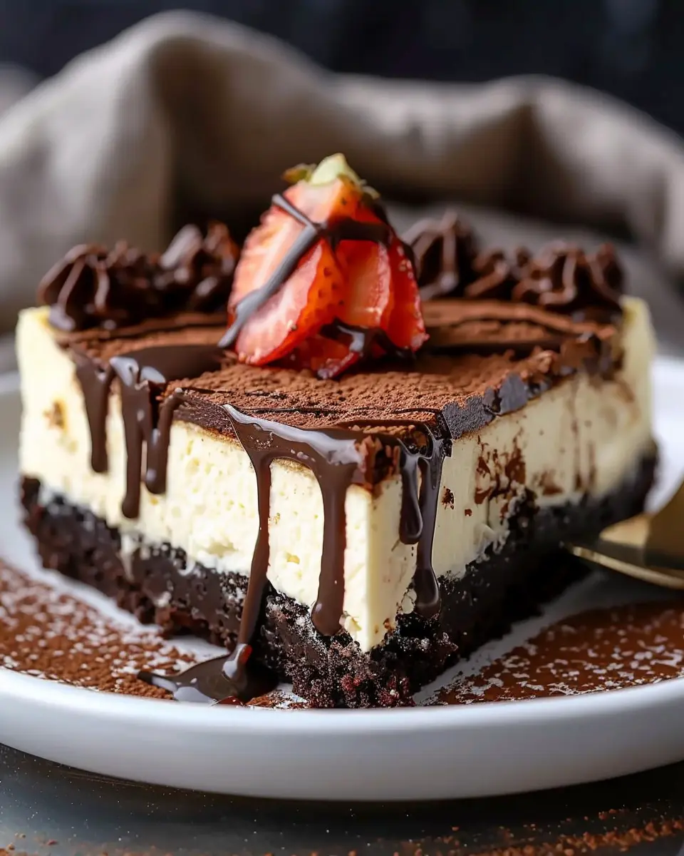 Elevate your Brownie Bottom Cheesecake with simple yet stunning garnishes. Fresh berries, such as strawberries or blueberries, add a pop of color and tartness that perfectly contrasts the richness of the cheesecake. Drizzling a homemade chocolate sauce or caramel over each slice can enhance the visual appeal and flavor. For a touch of elegance, consider adding a dollop of whipped cream on top and sprinkling some chopped nuts or a dusting of cocoa powder for texture.