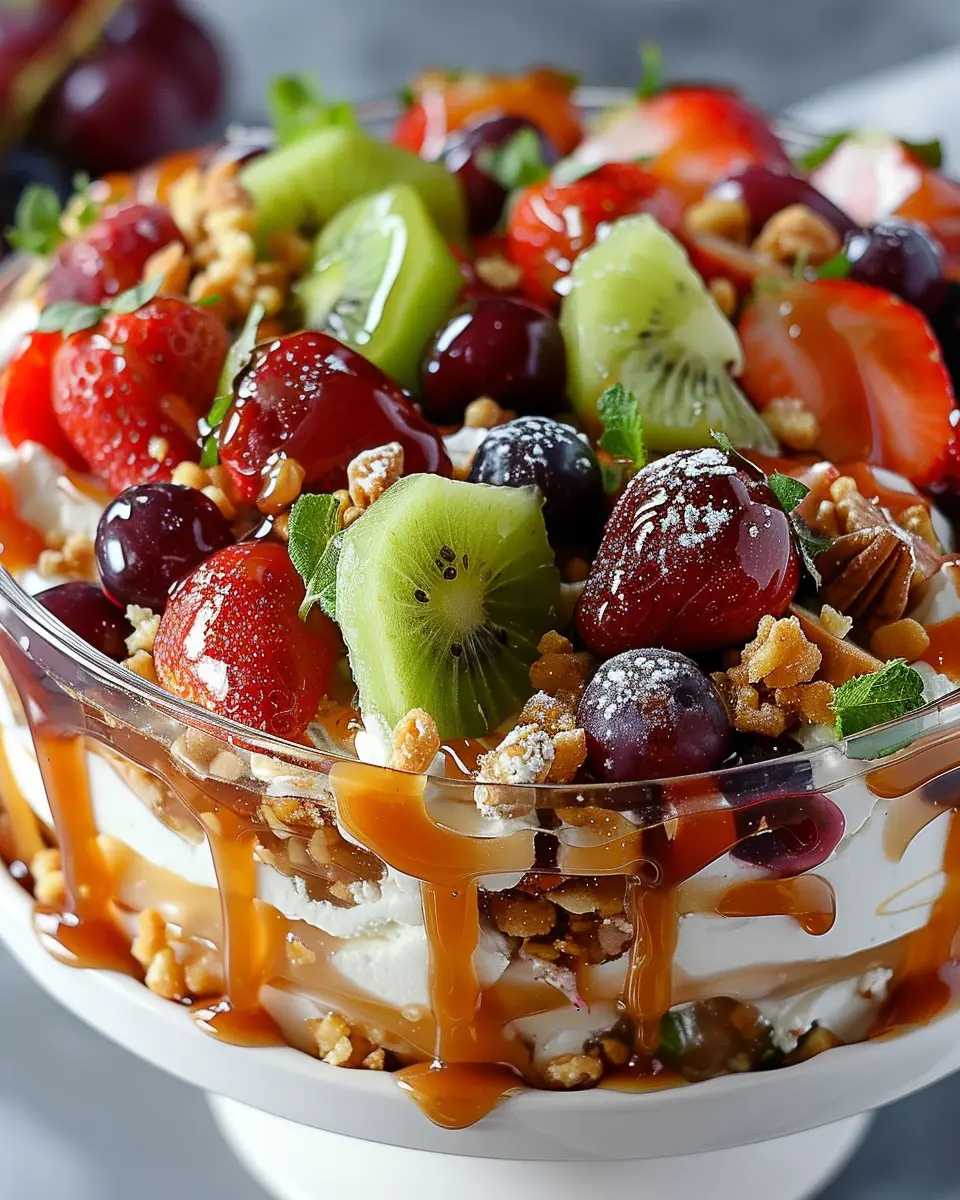When it comes to desserts that impress, Caramel Crunch Cheesecake Fruit Salad is at the top of the list. Combining the creamy richness of cheesecake with the refreshing zing of fruit, this dish truly has it all. As you take a bite, the contrasting textures and flavors will dance on your palate.