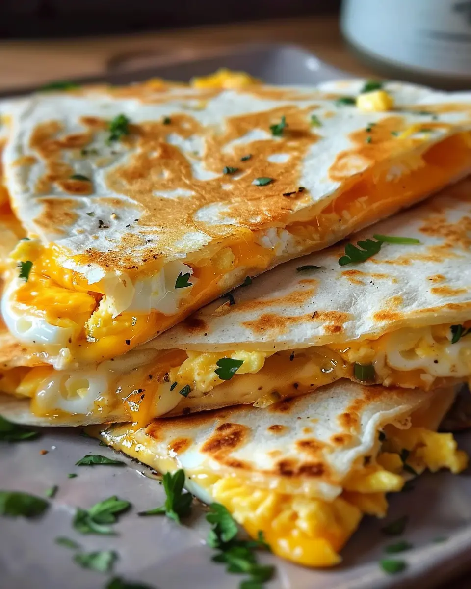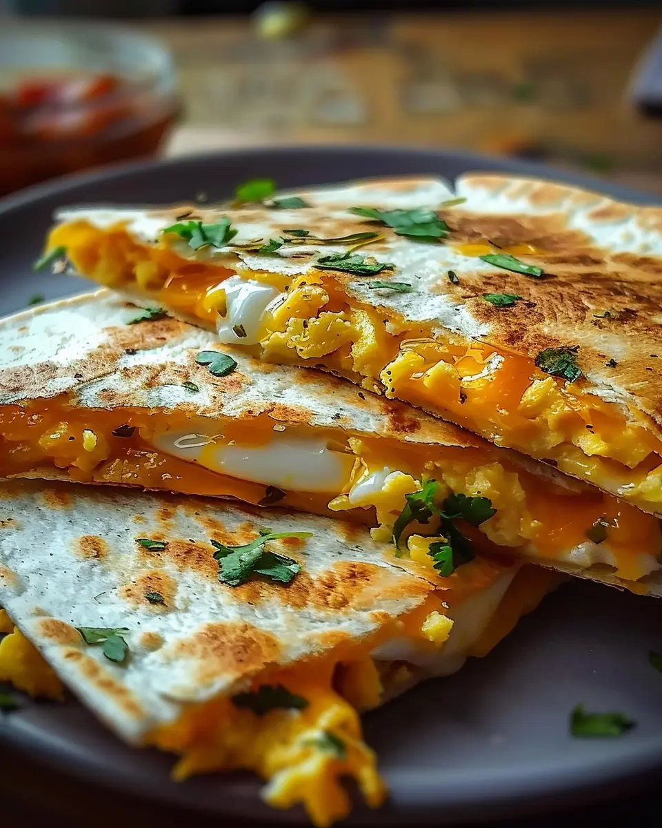 A delightful and easy recipe for Cheddar Egg Quesadilla with a turkey bacon twist, perfect for a delicious breakfast.