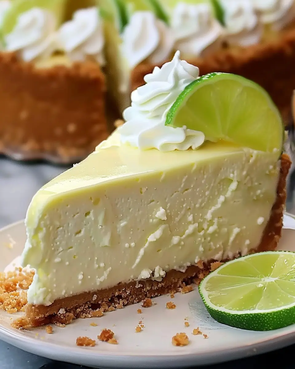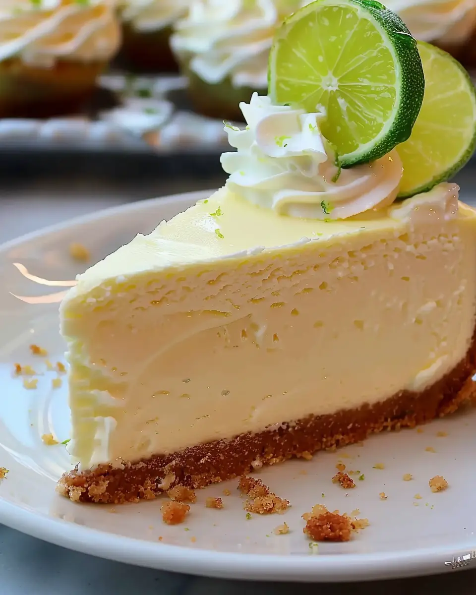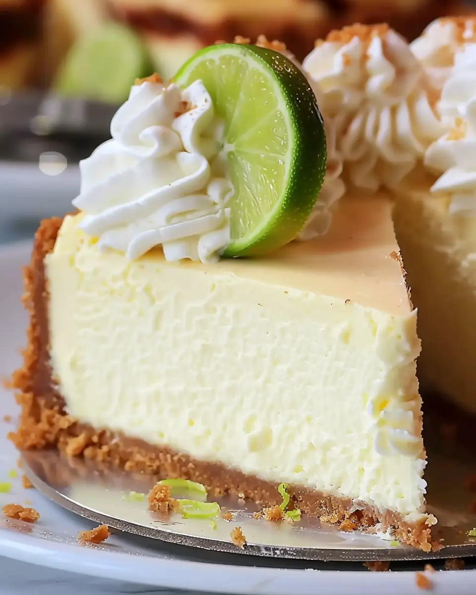 When you’re ready to serve, garnish your cheesecake with fresh whipped cream and slices of lime for a beautiful presentation. You can add a sprinkle of crushed graham cracker on top for that extra crunch.