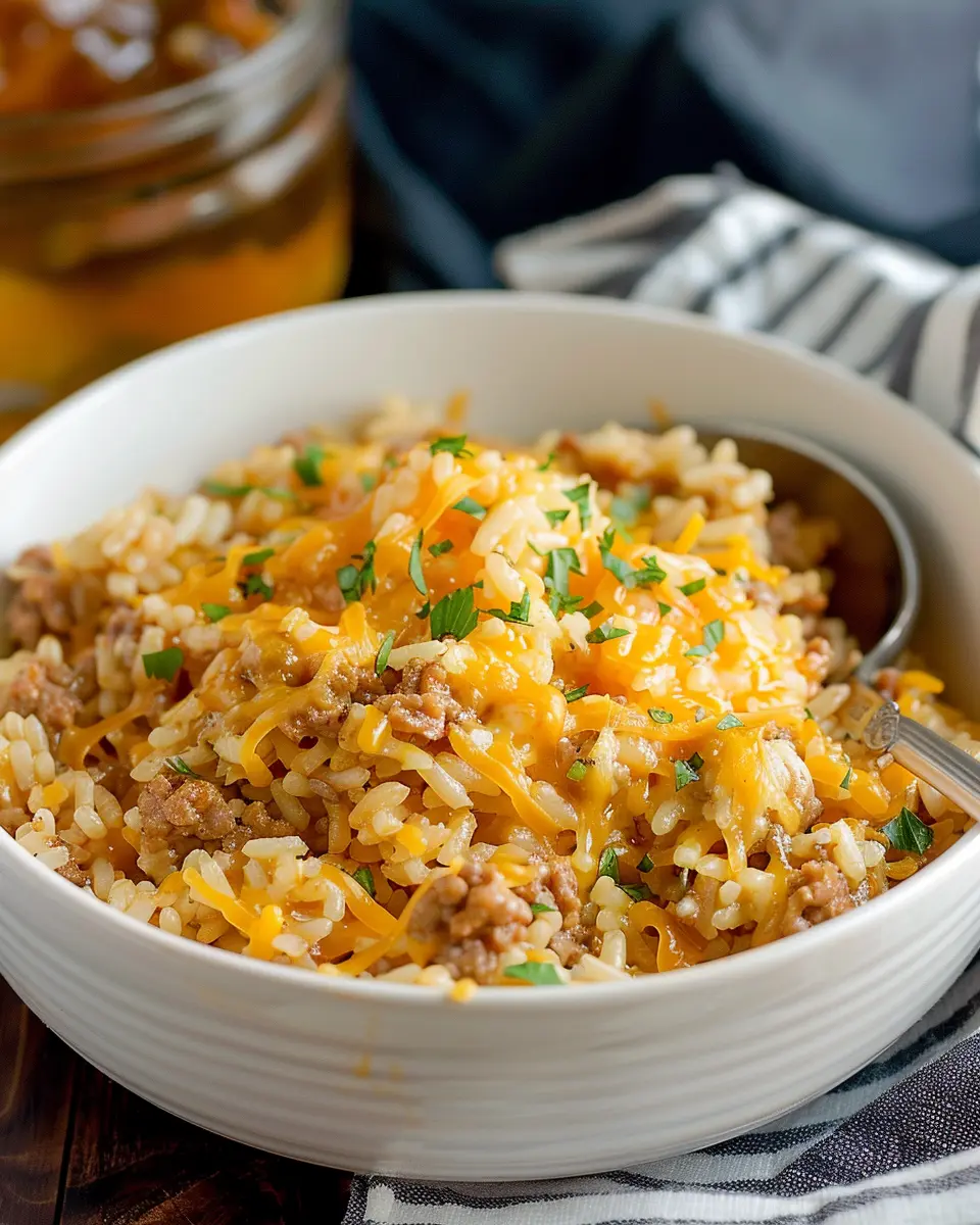 And there you have it, a simple yet rewarding recipe for Cheesy Ground Beef and Rice Casserole! Not only is it a hearty meal perfect for gatherings or a cozy night in, but it’s also versatile—feel free to add your favorite veggies or spices to customize to your liking. Happy cooking!