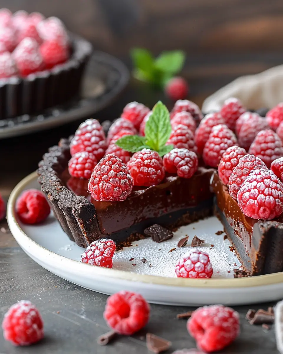 Fresh raspberries elevate your chocolate raspberry tart, contributing a burst of tartness that perfectly balances the rich chocolate.