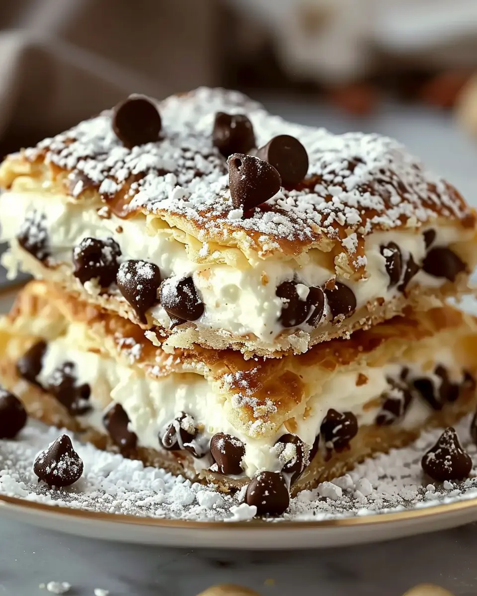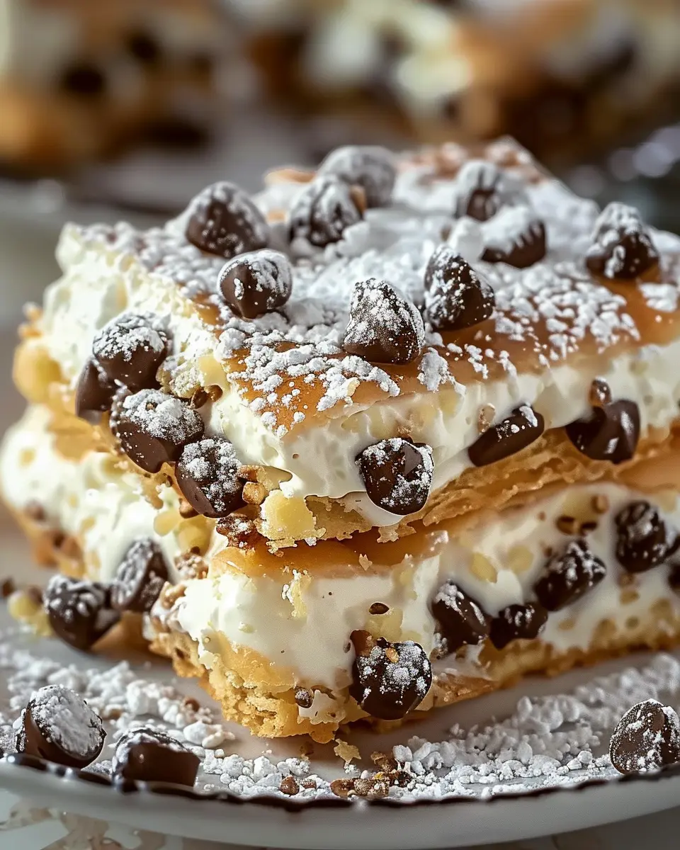 Indulge in the exquisite taste of Classic Cannoli Squares, a delightful treat that combines creamy filling with a crispy base.