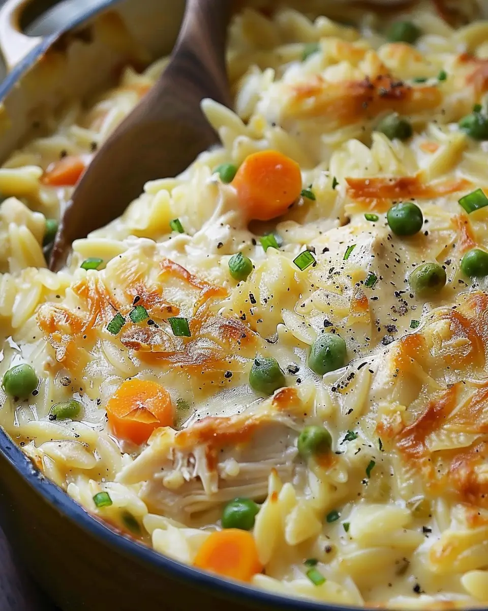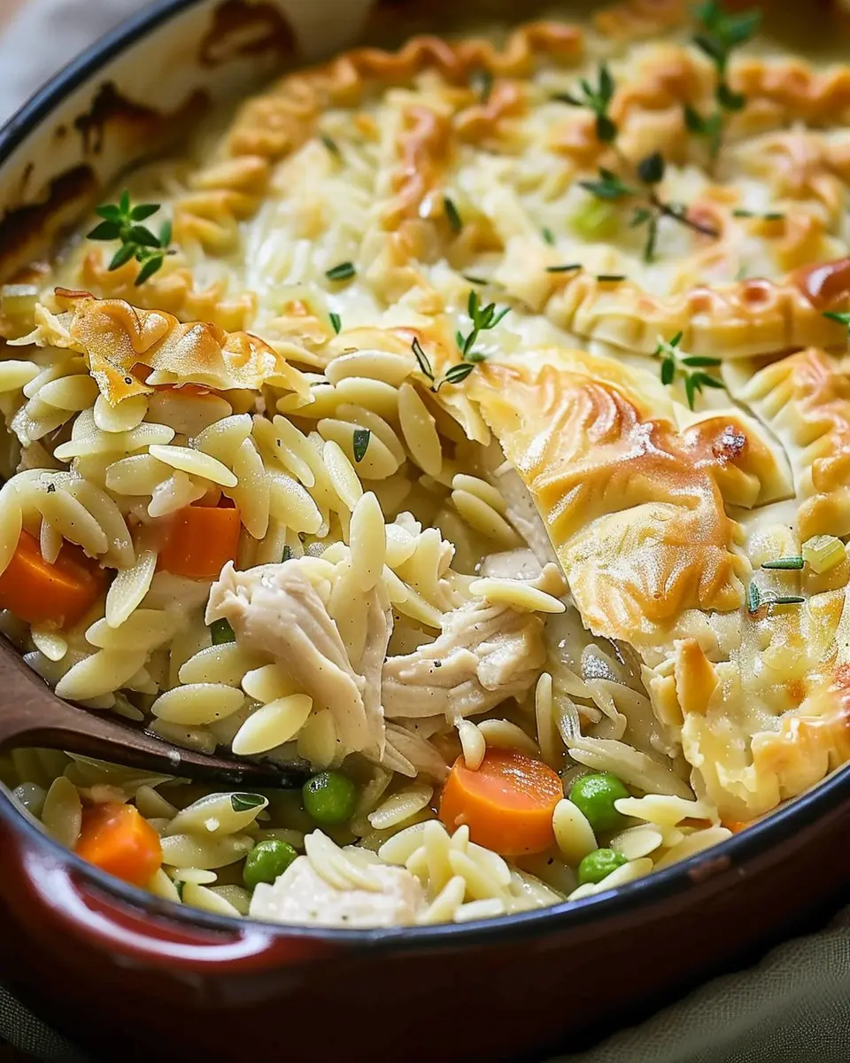 Remember, no matter which ingredients you choose, the essence of Cozy Chicken Pot Pie Orzo lies in its heartwarming flavors and comforting textures, making it suitable for any occasion. Happy cooking!