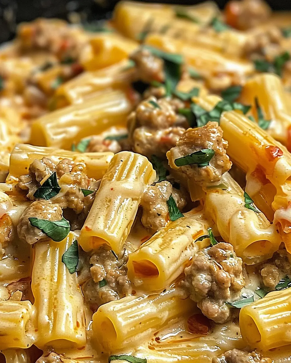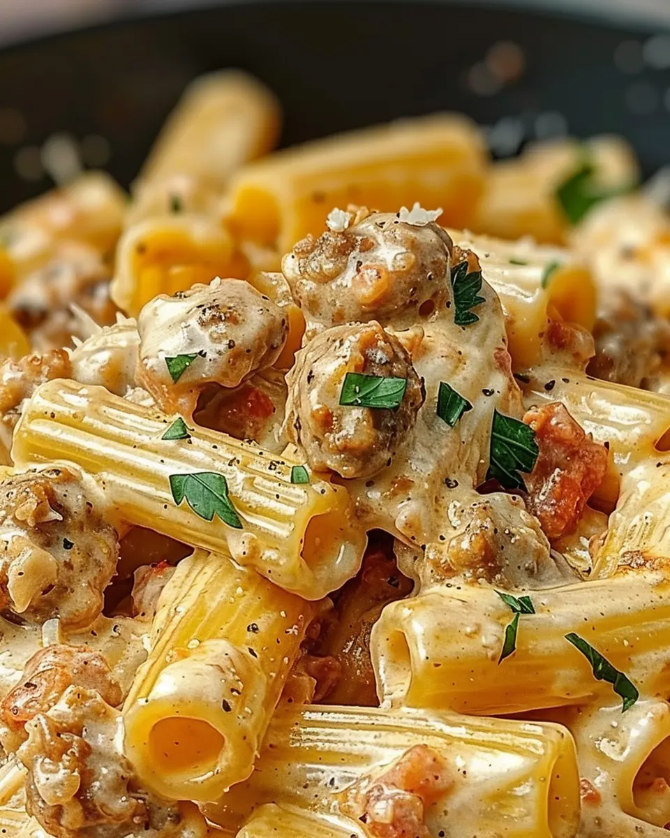 A delightful and creamy Italian dish featuring rigatoni pasta and savory sausage, perfect for a comforting meal.