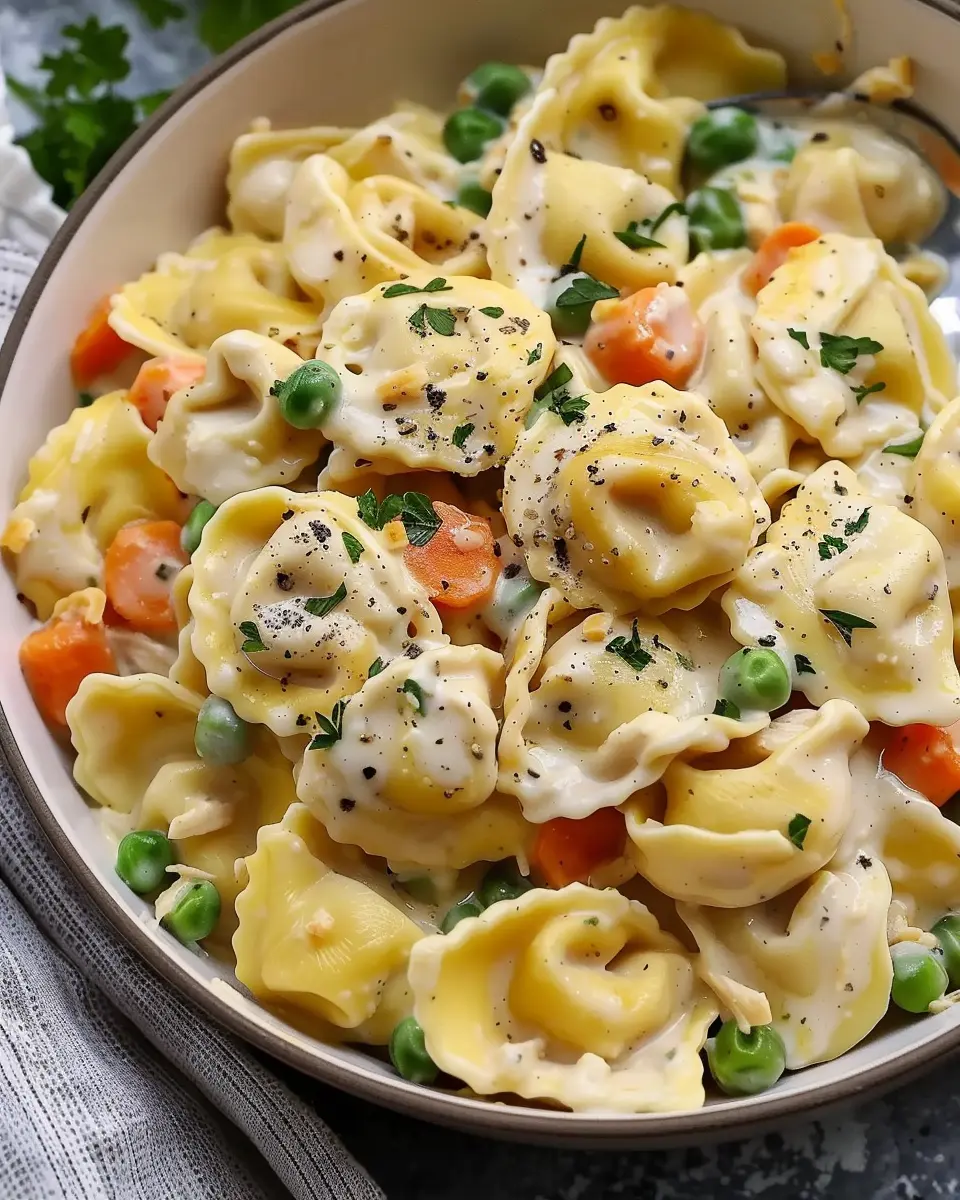 Variations on Crockpot Cheddar Chicken Pot Pie Tortellini