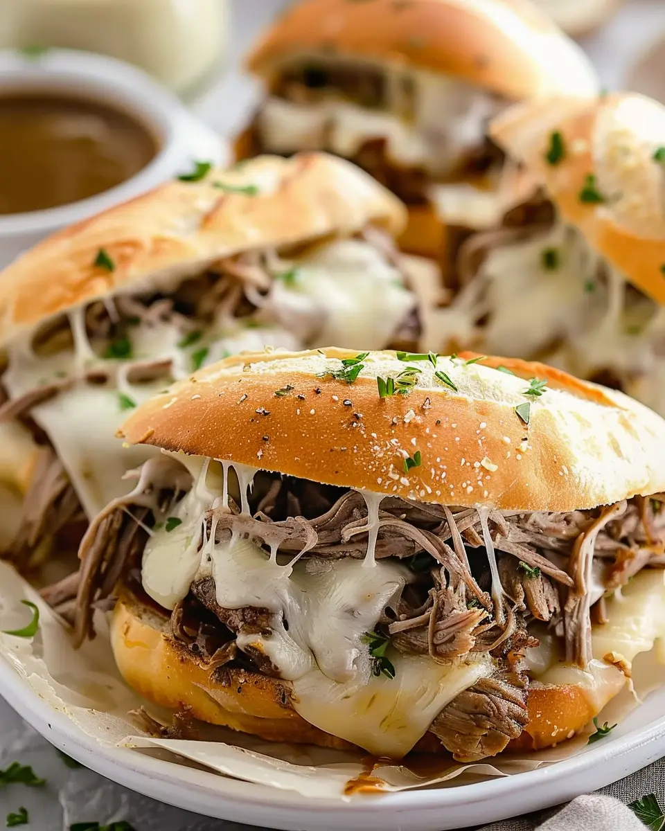 Want to take your Crockpot French Dip Sandwiches to the next level? Consider adding: