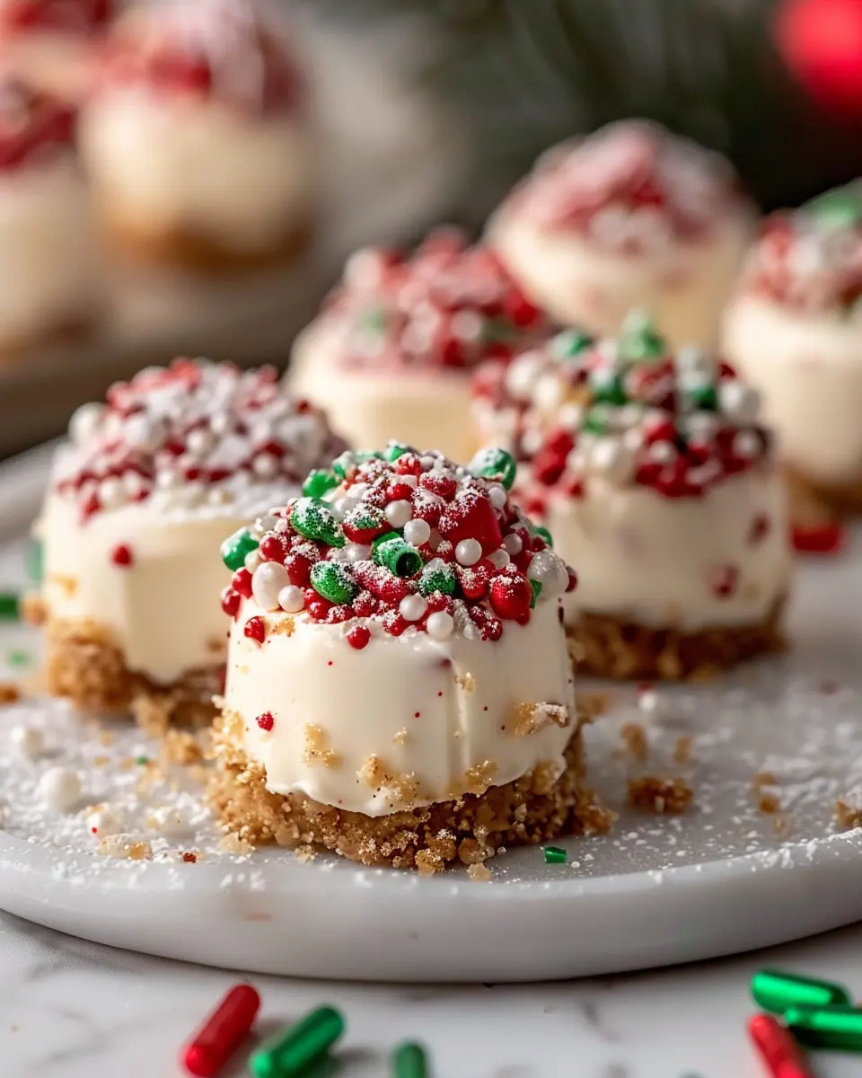 PrintDelicious No-Bake Christmas Cheesecake Bites You’ll Adore