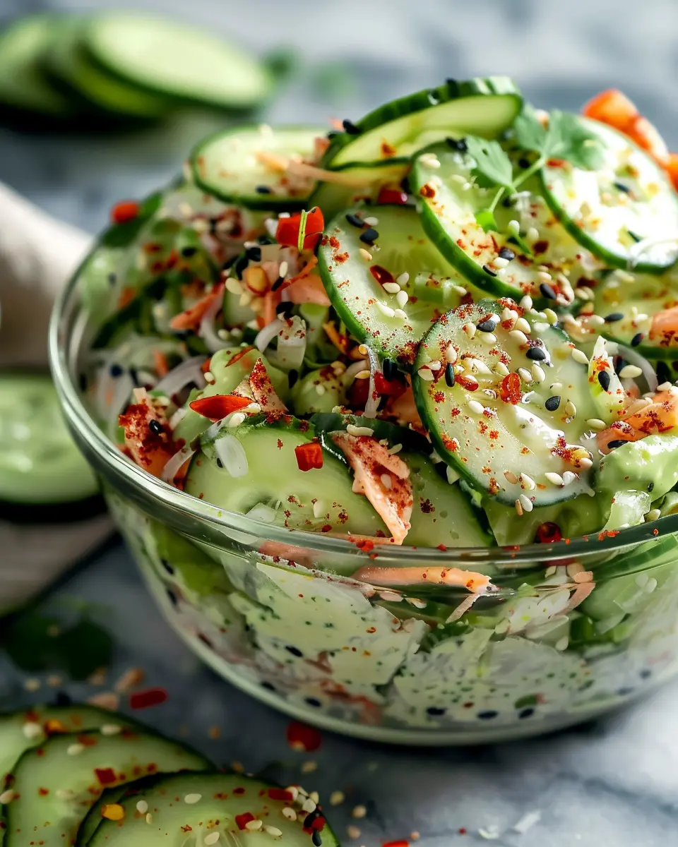 Immediate Serving: For the freshest taste, consider serving the salad right away. The crunch of the cucumbers and the creaminess of the dressing are at their best when fresh.