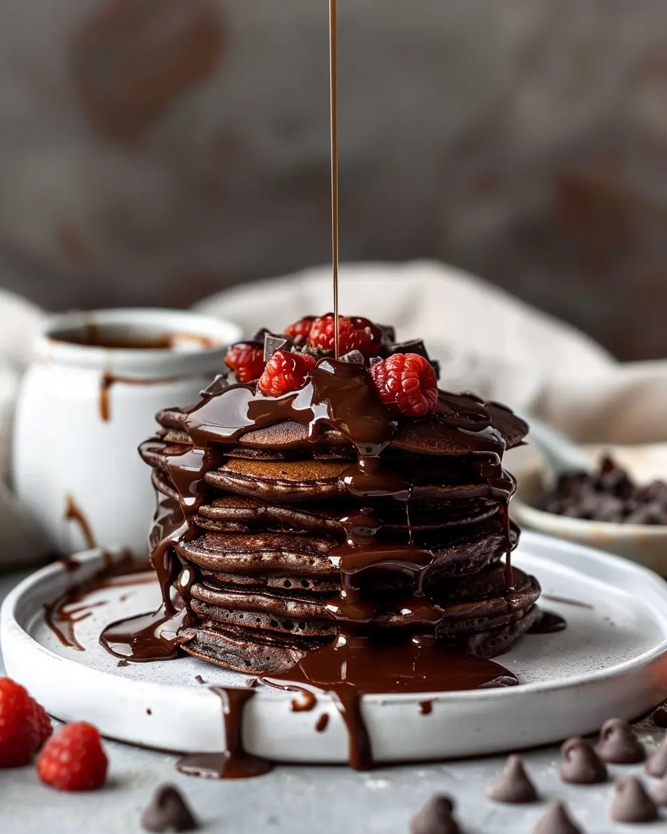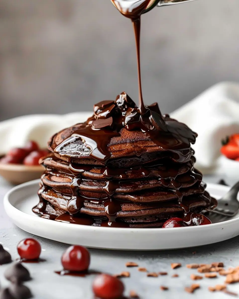 Once your easy chocolate pancakes are golden and fluffy, stack them high on a plate. Drizzle with that rich chocolate ganache, and serve with fresh fruit like berries or banana slices. For a savory touch, consider pairing with sides of Turkey Bacon or Chicken Ham.