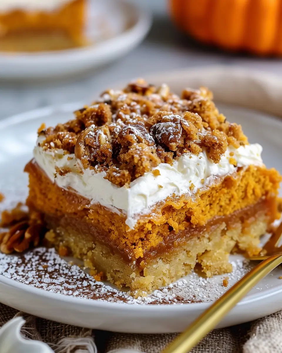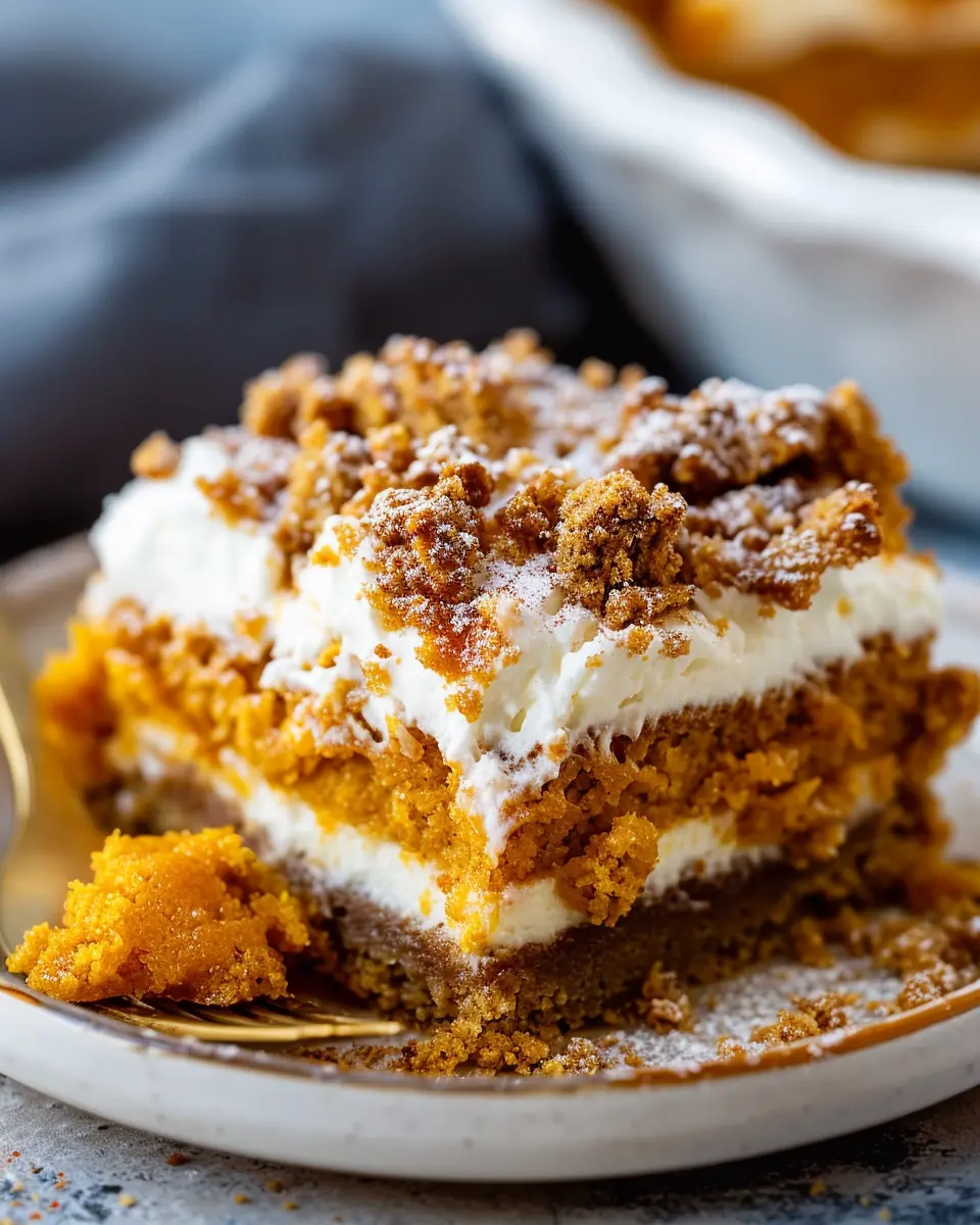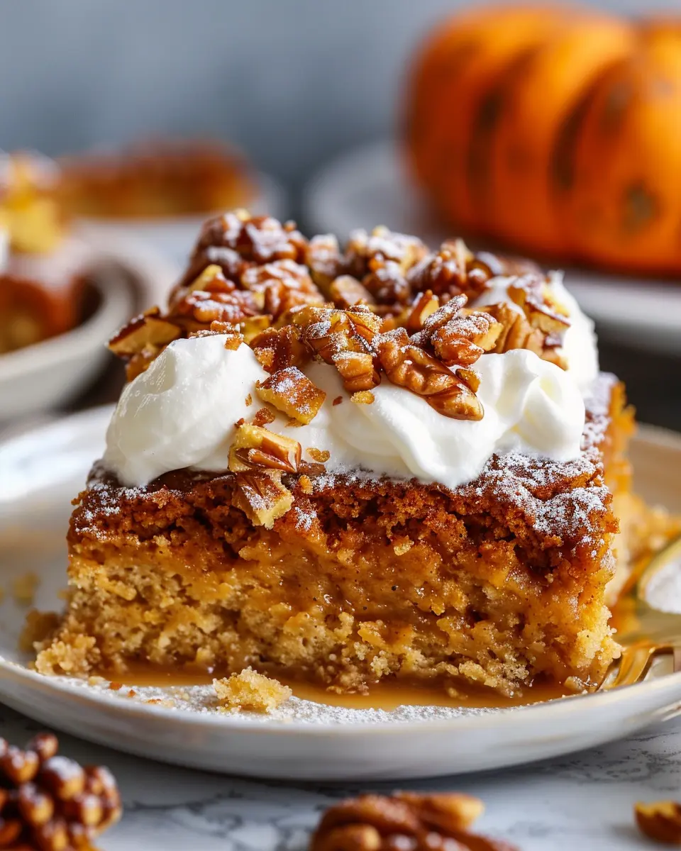 When serving your easy pumpkin dump cake, consider pairing it with a dollop of whipped cream or a scoop of vanilla ice cream. These creamy textures beautifully complement the cake's rich pumpkin flavor. You could also sprinkle some crushed pecans or walnuts on top for added crunch. For a seasonal twist, a drizzle of caramel sauce or a dusting of cinnamon adds just the right touch of cozy warmth.