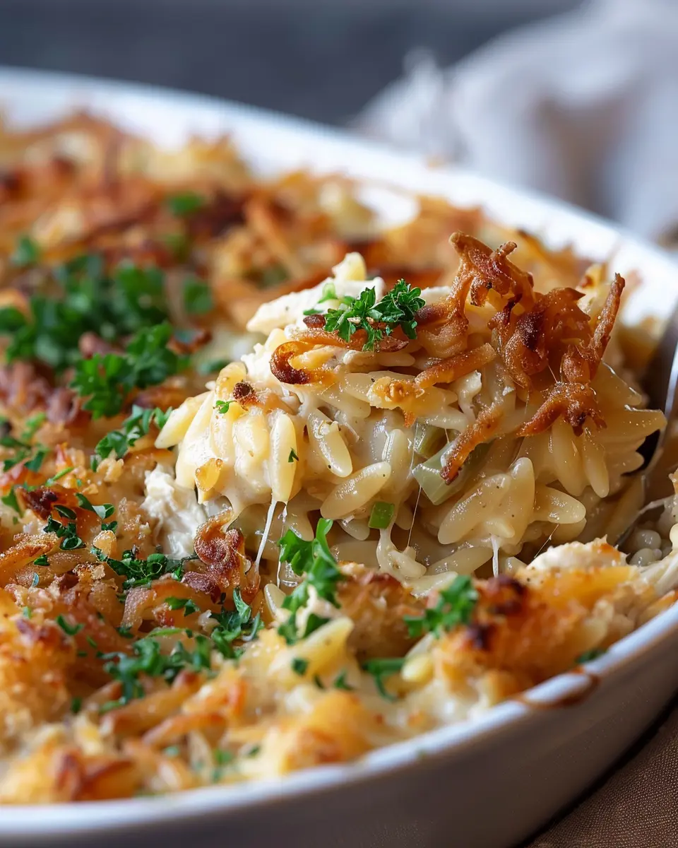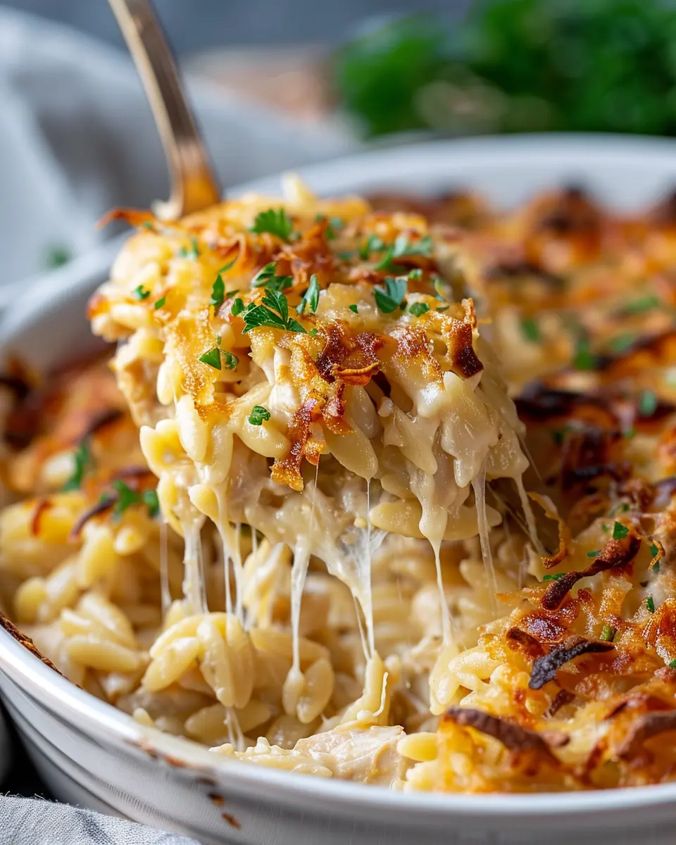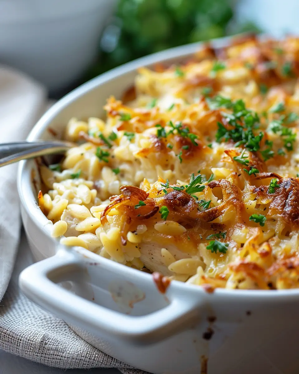 PrintFrench Onion Chicken Orzo Casserole: Indulgent Comfort Food Delight