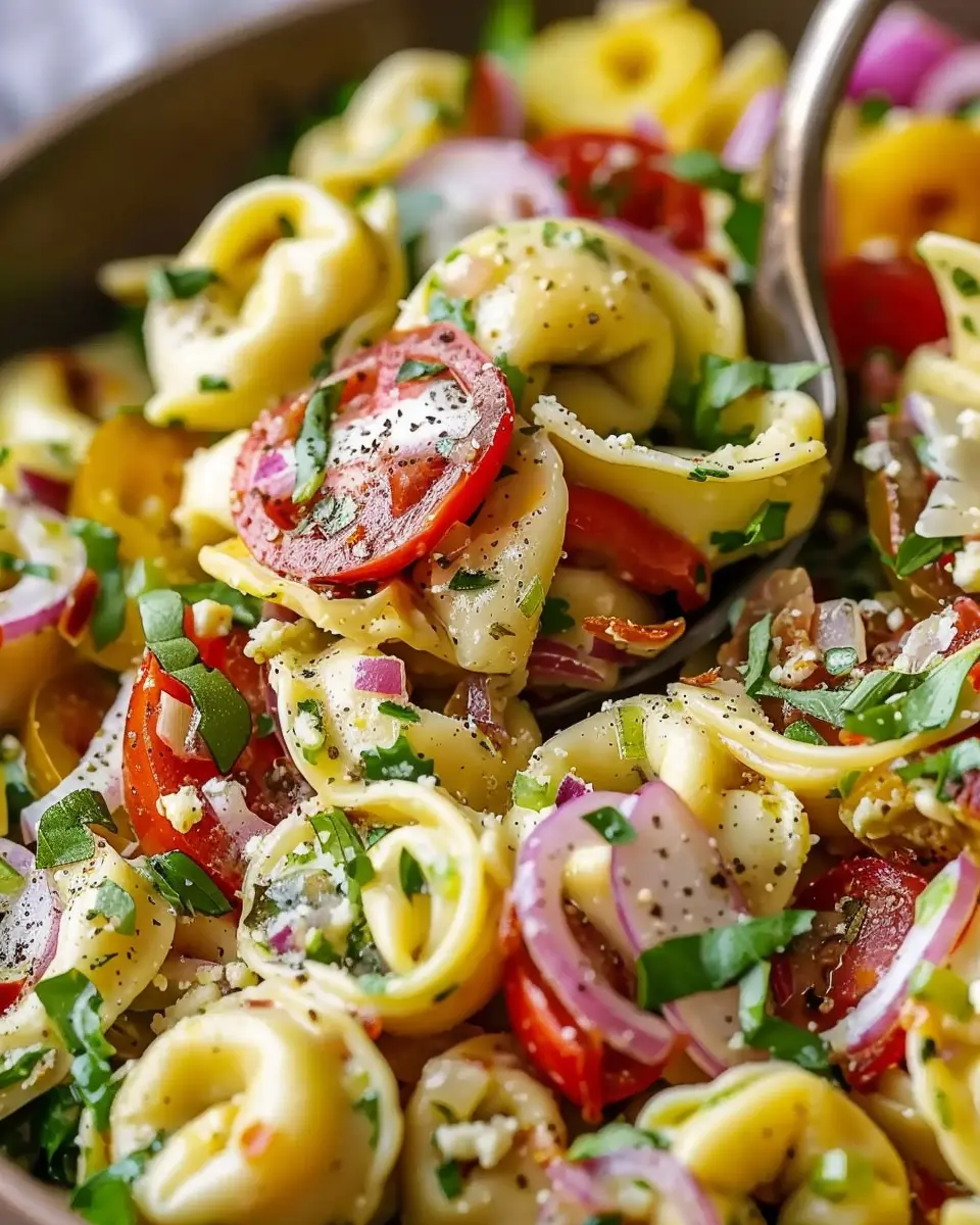 Now, let’s bring it all together! In a large bowl, combine your cooked cheese tortellini, crispy turkey bacon, and your favorite salad veggies—cherry tomatoes, spinach, and thinly sliced bell peppers work beautifully here. Drizzle your dressing over the top and gently toss everything together, making sure every piece is well-coated. You can also add some grated parmesan cheese or fresh herbs like basil or parsley for an extra layer of flavor and freshness.