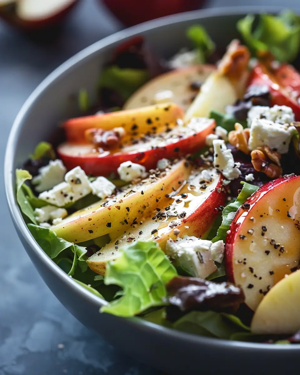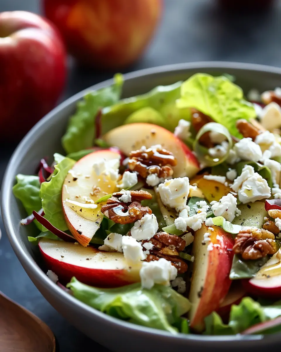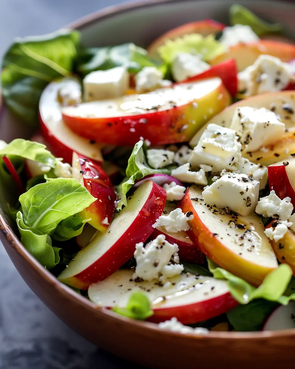 Serve your salad in a large, colorful bowl to showcase the vibrant hues of the apples and feta. Adding toasted nuts, like walnuts or pecans, not only introduces crunch but elevates the visual appeal.