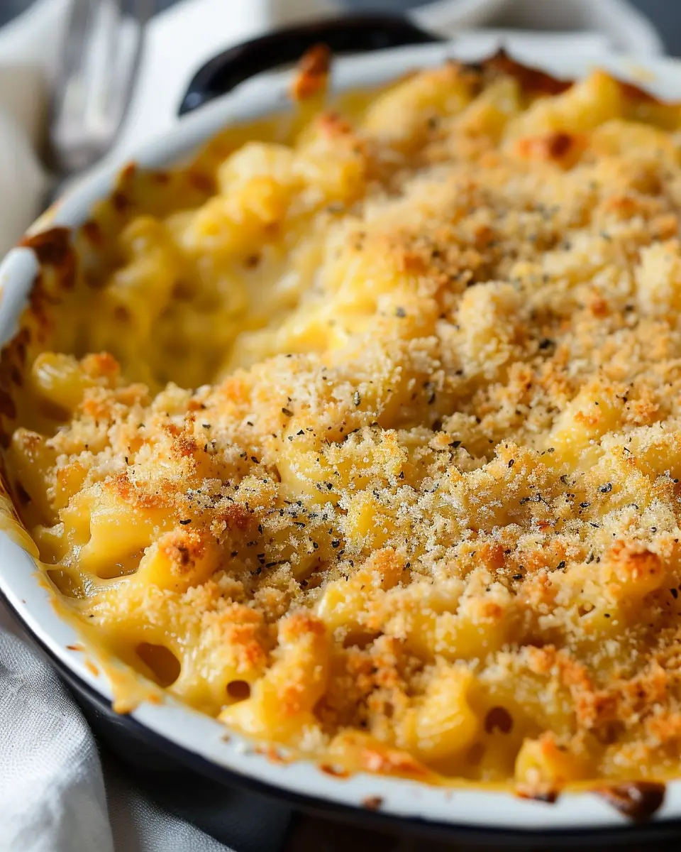 In a separate bowl, combine your breadcrumbs with grated Parmesan cheese for a delightful crunchy topping. Sprinkle this mixture evenly over the mac and cheese. Bake it in the oven for about 30-35 minutes, or until the top is golden and bubbly—just the way you want it!