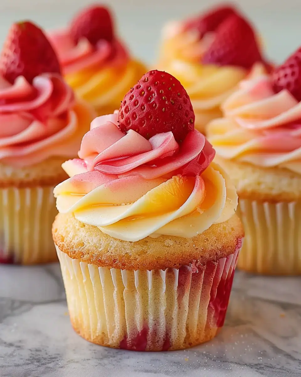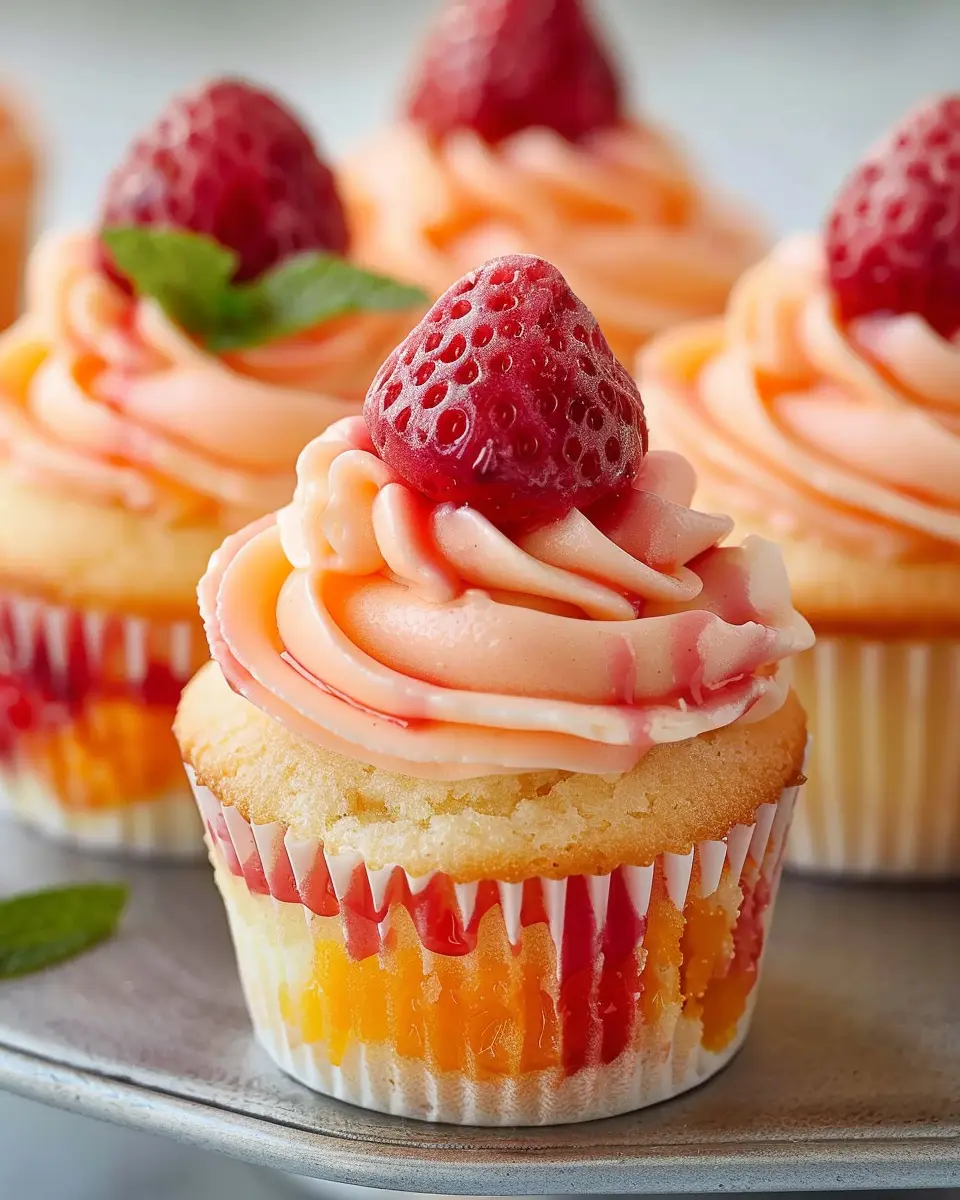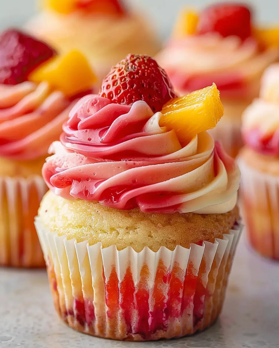 These Mango Strawberry Sunset Cupcakes are a delightful treat perfect for any occasion, combining the sweetness of mango with the tartness of strawberries.