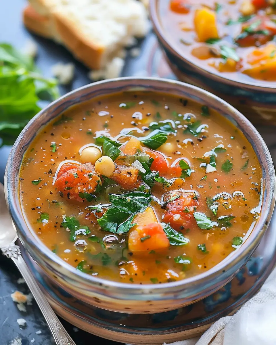One of the best ways to elevate your Mediterranean soup experience is by pairing it with a warm, crusty bread. Think of a fresh baguette or a rustic whole grain loaf—perfect for dipping and soaking up all those rich flavors. If you’re in the mood for something lighter, a vibrant salad featuring crisp greens, olives, and feta complements the soup beautifully.