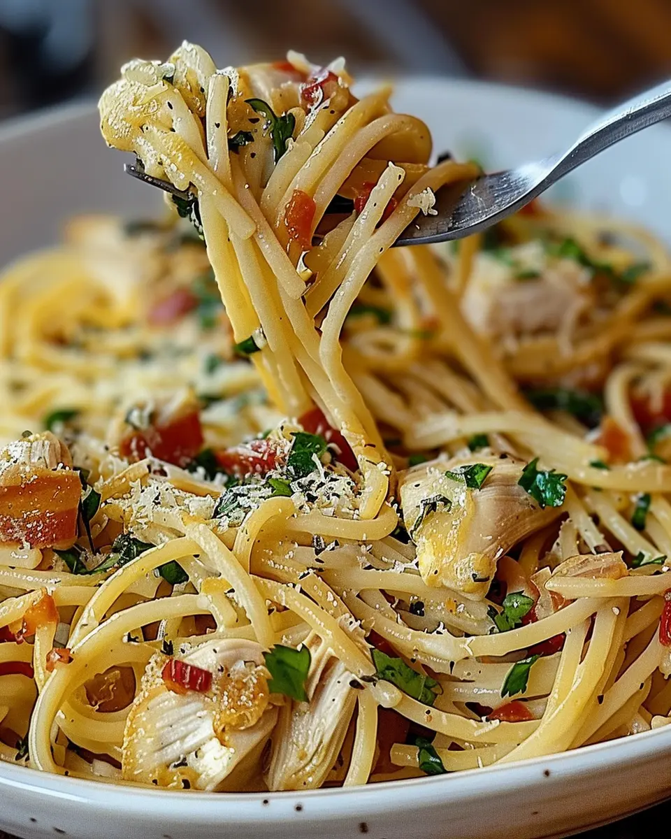 If you’re someone who loves a kick in your meals, try a Spicy Monterey Chicken Spaghetti. Begin by adding a tablespoon of your favorite hot sauce or some diced jalapeños to the sauce mix. This brings out a flavorful heat that complements the creaminess of the cheese and the savory notes of the turkey bacon and chicken ham. For an extra punch, consider sprinkling in some crushed red pepper flakes just before serving. It’s an exciting twist that will have your taste buds dancing!