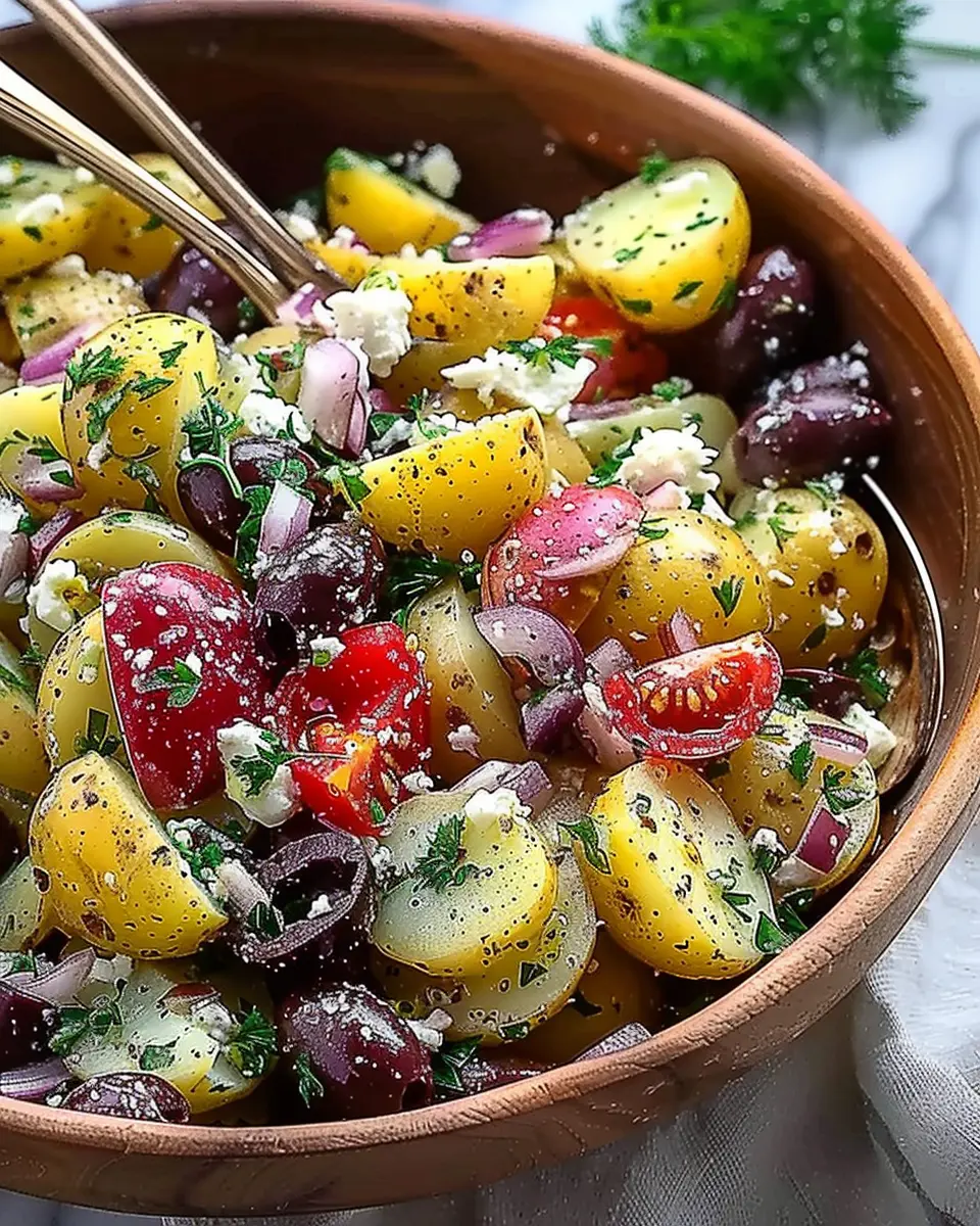 For the ultimate experience, let your Olive Greek Potato Salad rest.
