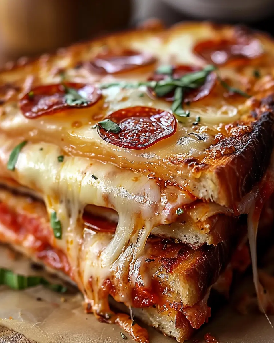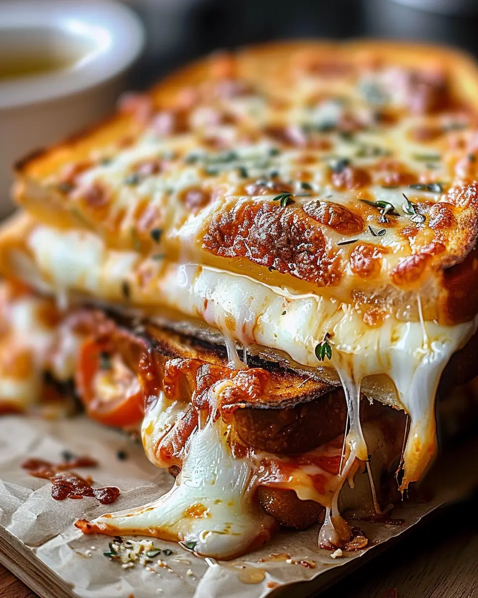 In conclusion, the Pizza Grilled Cheese is more than just a delicious meal; it’s a celebration of flavors that brings comfort to your plate. Whether you’re enjoying it as a quick weeknight dinner or whipping it up for a cozy weekend brunch, this recipe is sure to impress. The combination of melted cheese, savory toppings like Turkey Bacon and Chicken Ham, and the crispy exterior makes every bite unforgettable. Plus, you can easily customize it with your favorite ingredients! So why not take a moment to indulge in this scrumptious twist on a classic? It’s time to get grilling!