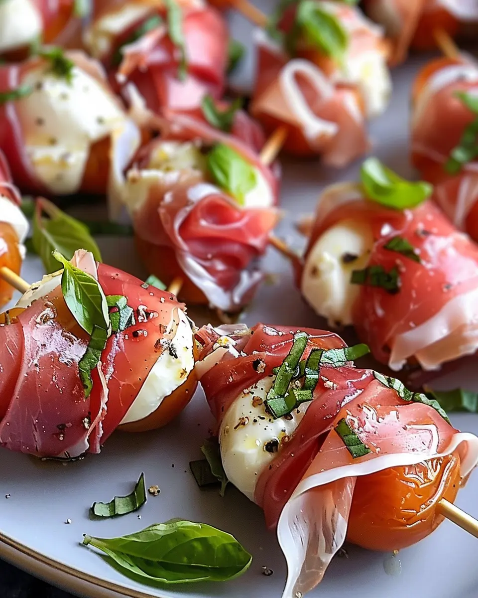 Absolutely! These prosciutto wrapped mozzarella bites are perfect for prepping in advance. You can assemble them a day ahead and store them in the refrigerator. Just be sure to cover them tightly to prevent the prosciutto from drying out. When you’re ready to serve, simply take them out and let them rest at room temperature for about 15 minutes for the best flavor. You can also heat them quickly in the oven if you prefer them warm!