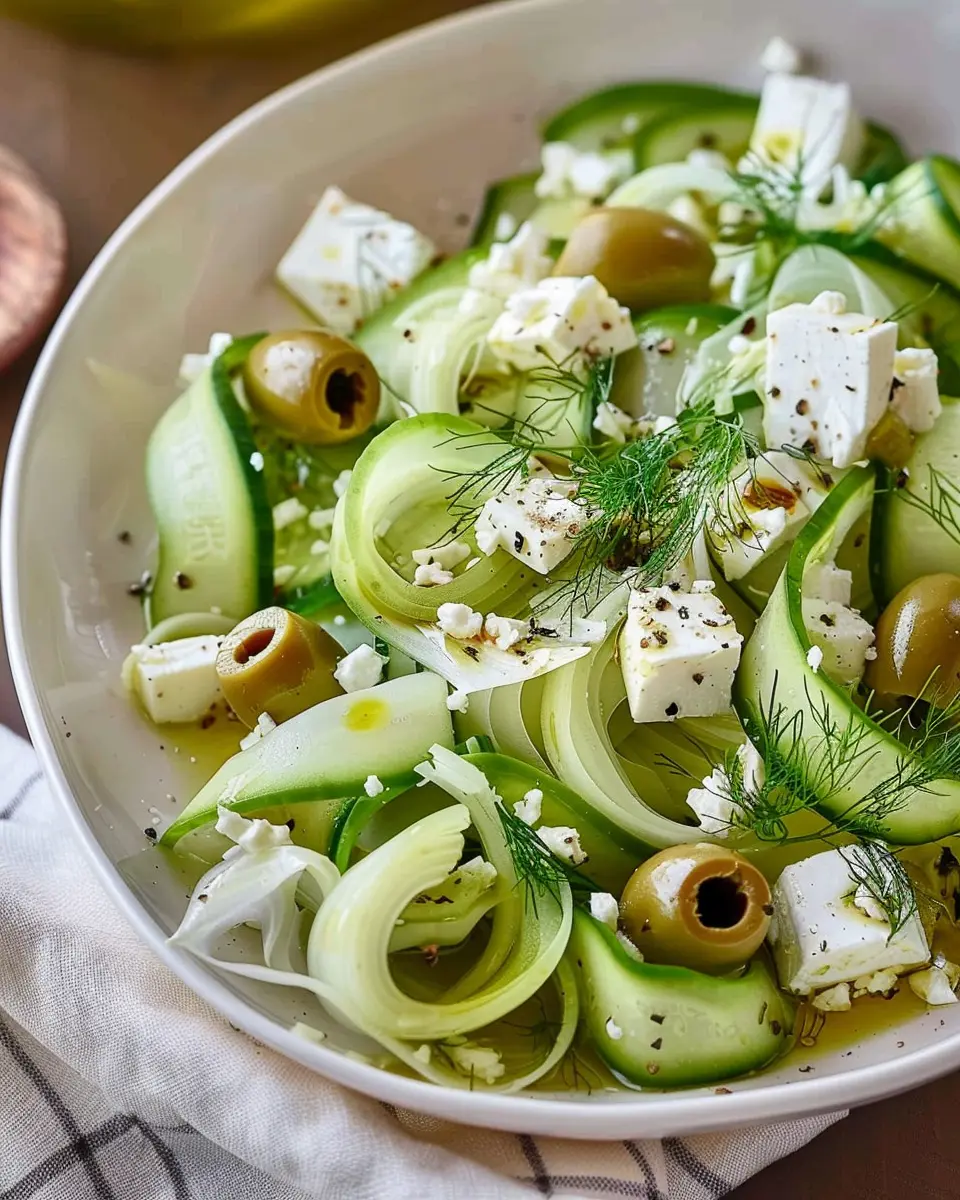 Absolutely! One of the perks of the shaved cucumber and fennel salad is that it can be prepped in advance. You can slice the cucumbers and fennel a few hours before serving, then toss them with the olives and feta just before you’re ready to eat. This way, the vegetables stay crisp and refreshing. If you prepare it too early, the salad may become soggy due to the release of moisture, so consider adding a drizzle of dressing right before serving for the best taste.