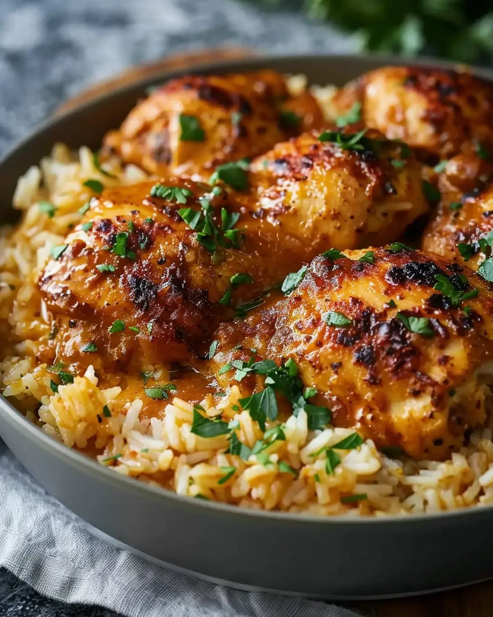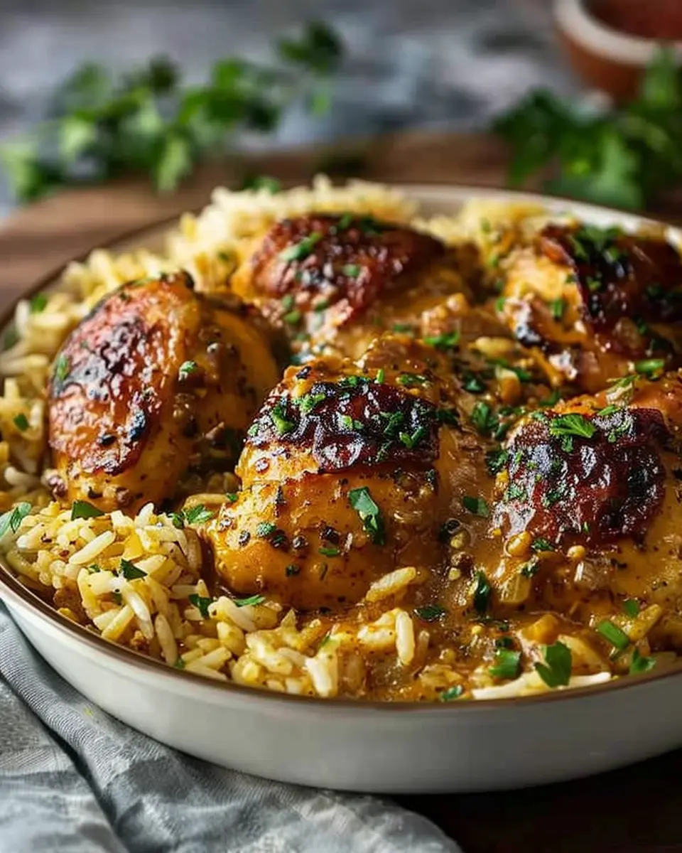 PrintSmothered Chicken and Rice: A Juicy Comfort Food Delight