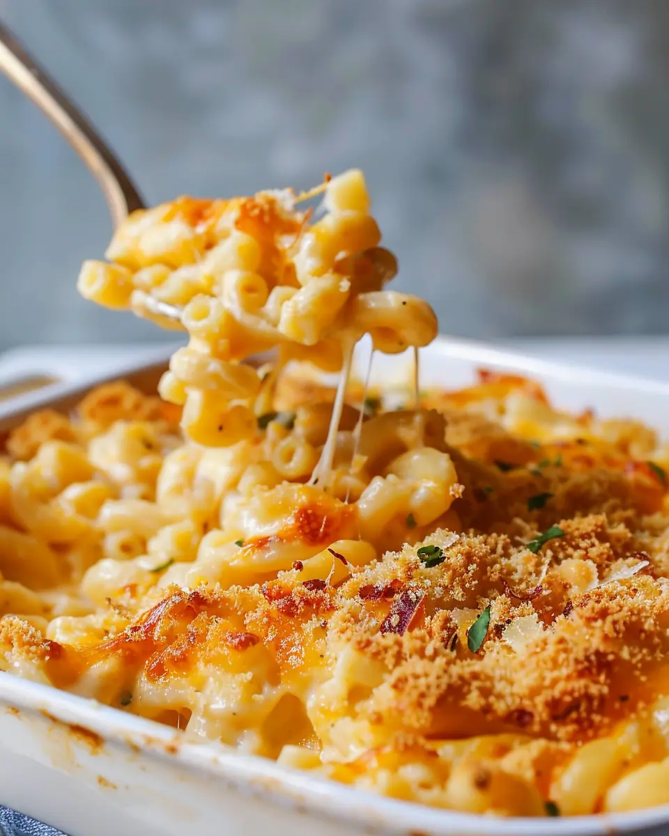 PrintSouthern Baked Mac and Cheese: Creamy Comfort with Turkey Bacon