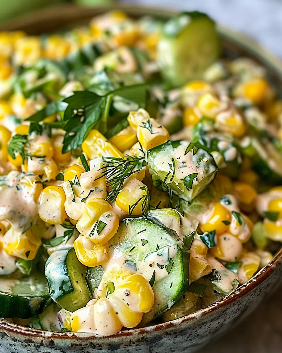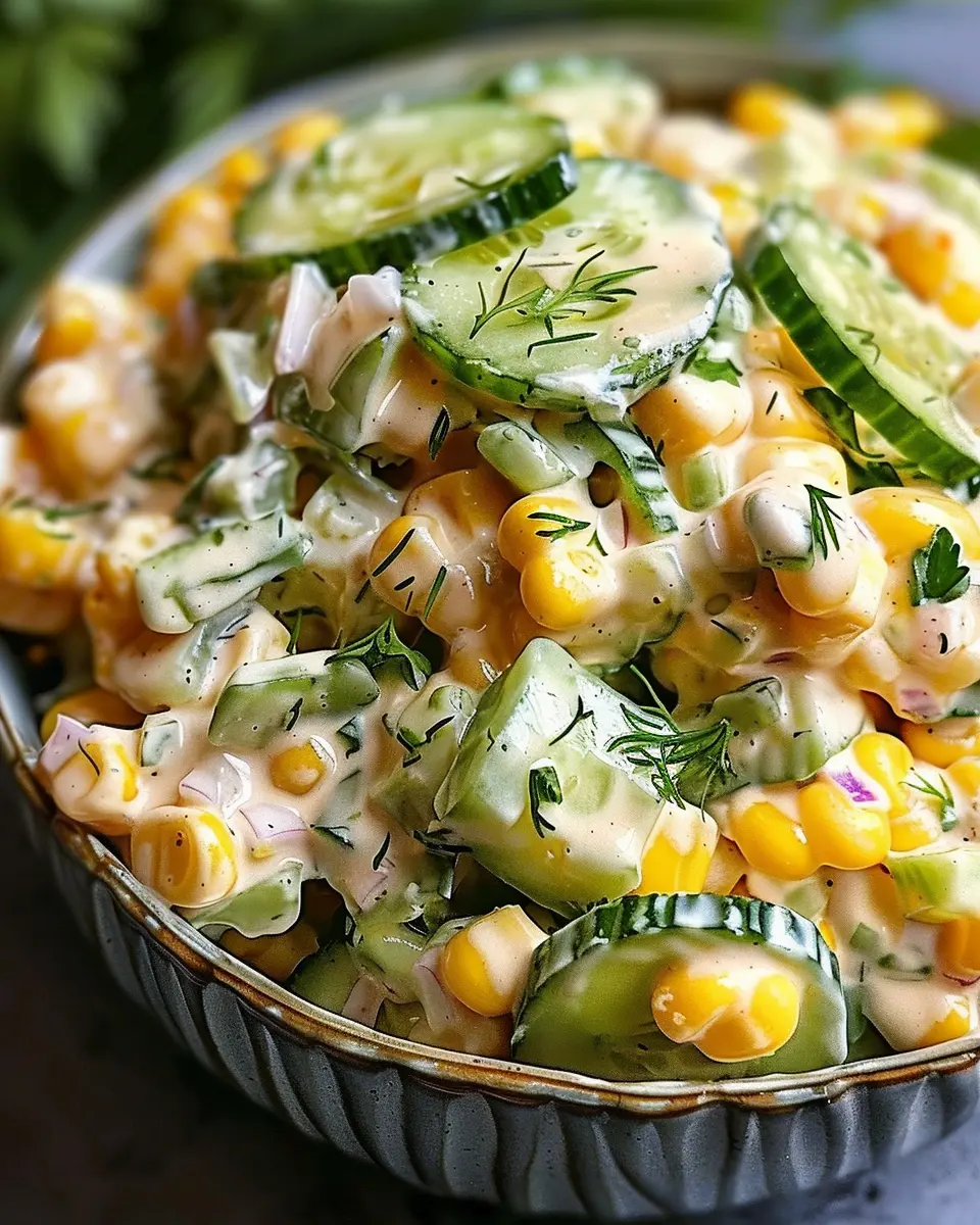 Plus, preparing this dish is a breeze! In no time, you’ll have a colorful bowl of salad that showcases the beauty of summer produce. The crunch of the cucumbers, combined with the pop of corn kernels, creates a textural delight that keeps each bite interesting.