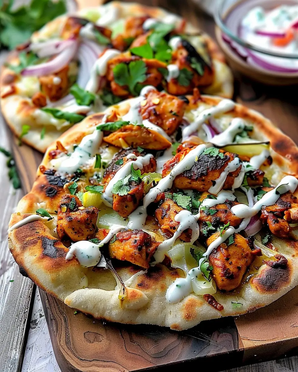 The beauty of Tandoori Chicken Naan Pizza lies in its adaptability. So why not mix things up with alternative toppings? Add a sprinkle of fresh cilantro, some tangy pickled onions, or even a drizzle of yogurt sauce for creaminess. For cheese lovers, swapping traditional mozzarella with feta or a goat cheese can elevate the dish, providing a rich contrast to the spices.