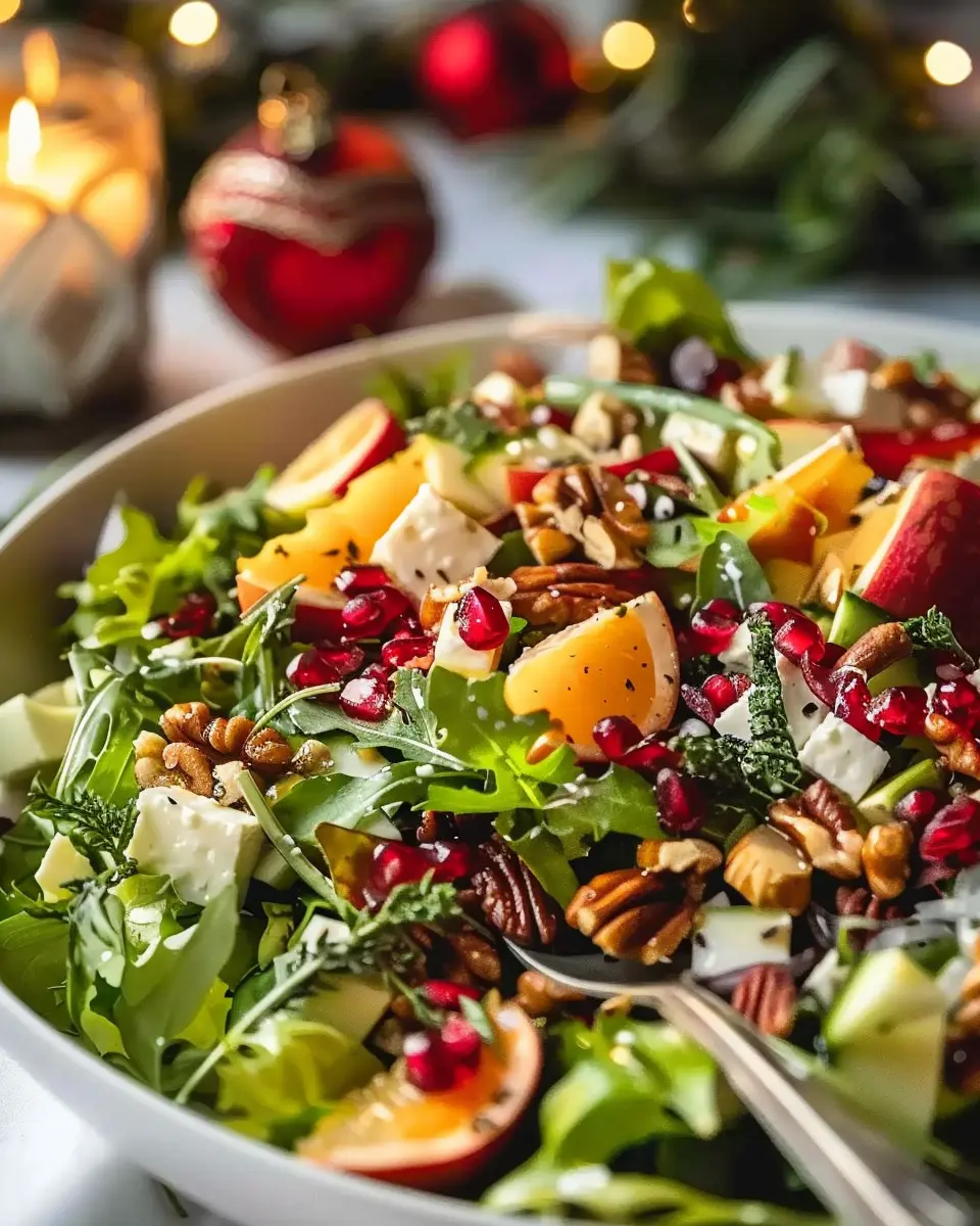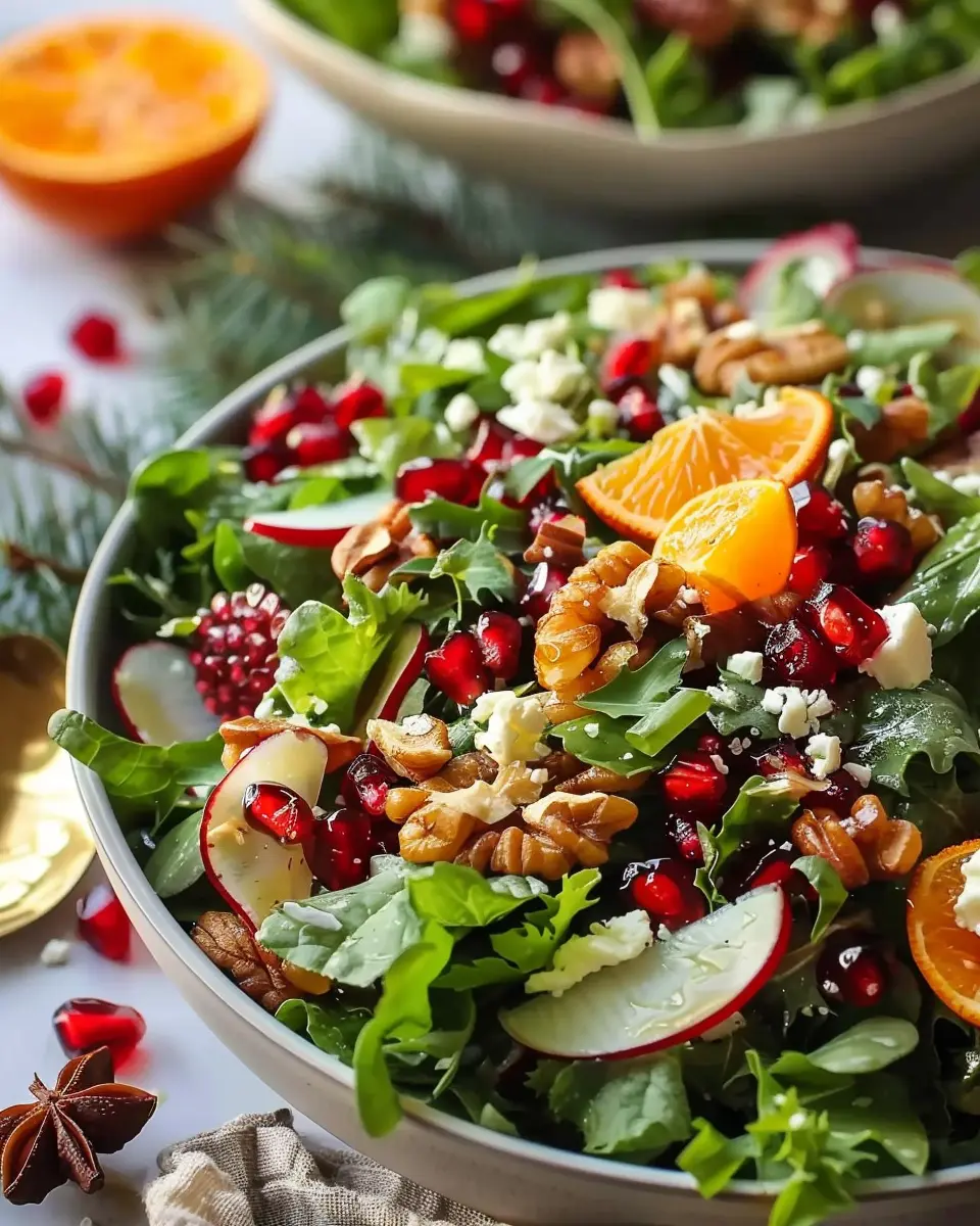 Creating a winter Christmas salad is not only a culinary adventure; it’s an opportunity to infuse your festive gathering with vibrant flavors and textures. This salad, with its mix of fresh greens, sweet fruits, and crunchy nuts, is the perfect addition to your holiday table. Let’s dive into the preparation process, step by step.